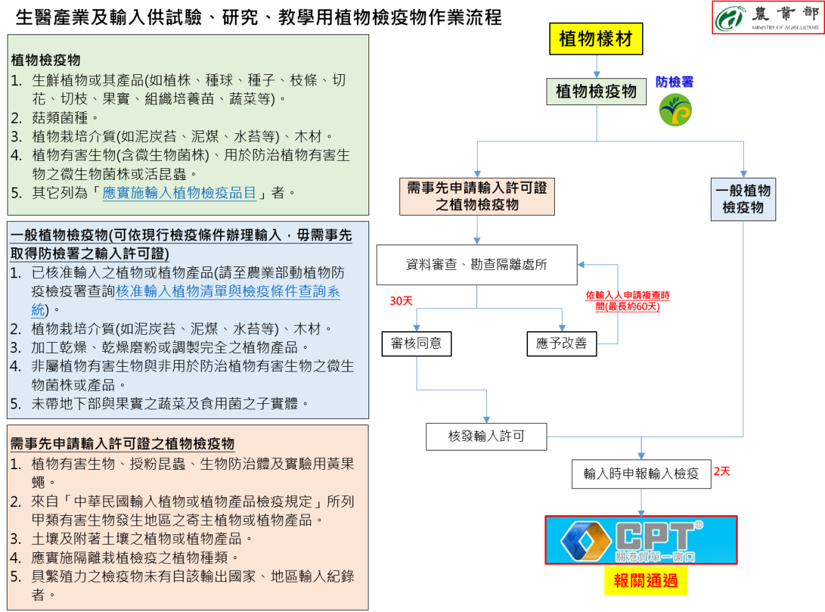 -相關申請程序與規定事項請參閱 特定植物檢疫物輸入作業說明 。